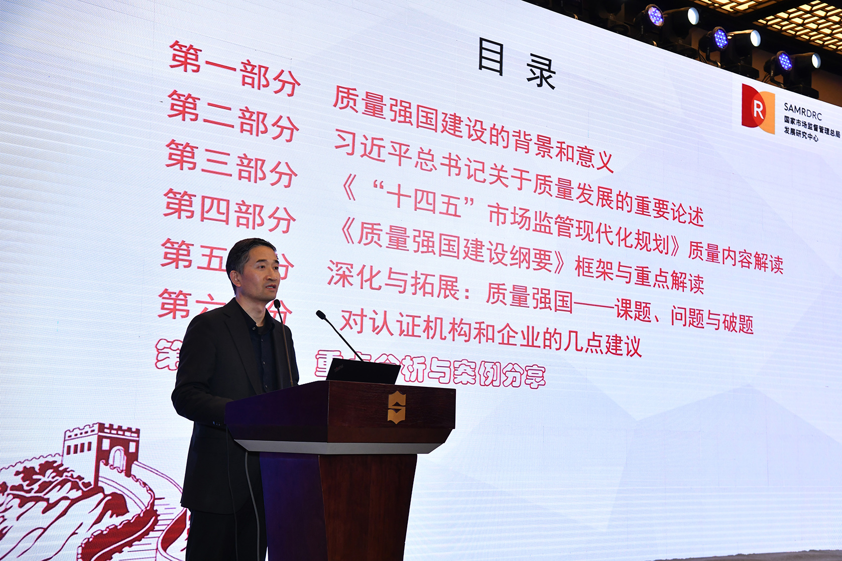 會上,國家市場監(jiān)督管理總局發(fā)展研究中心研究員安森東教授對《質(zhì)量強國建設(shè)綱要》進行了重點解讀。《質(zhì)量強國建設(shè)綱要》是2023年2月6日中共中央、國務(wù)院印發(fā)。這是以習(xí)近平同志為核心的黨中央立足全面建設(shè)社會主義現(xiàn)代化國家、著眼統(tǒng)籌“兩個大局”、著力推動經(jīng)濟社會高質(zhì)量發(fā)展作出的重大決策部署,是貫徹落實黨的二十大精神、推進中國式現(xiàn)代化的重大舉措,是新時代建設(shè)質(zhì)量強國的宏偉藍圖,在我國質(zhì)量事業(yè)發(fā)展史上具有重大里程碑意義。安森東教授結(jié)合《綱要》主要內(nèi)容,進行重點分析與案例分享,對認證機構(gòu)和企業(yè)提出了良好的建議,參會企業(yè)與人員都感到受益良多。
