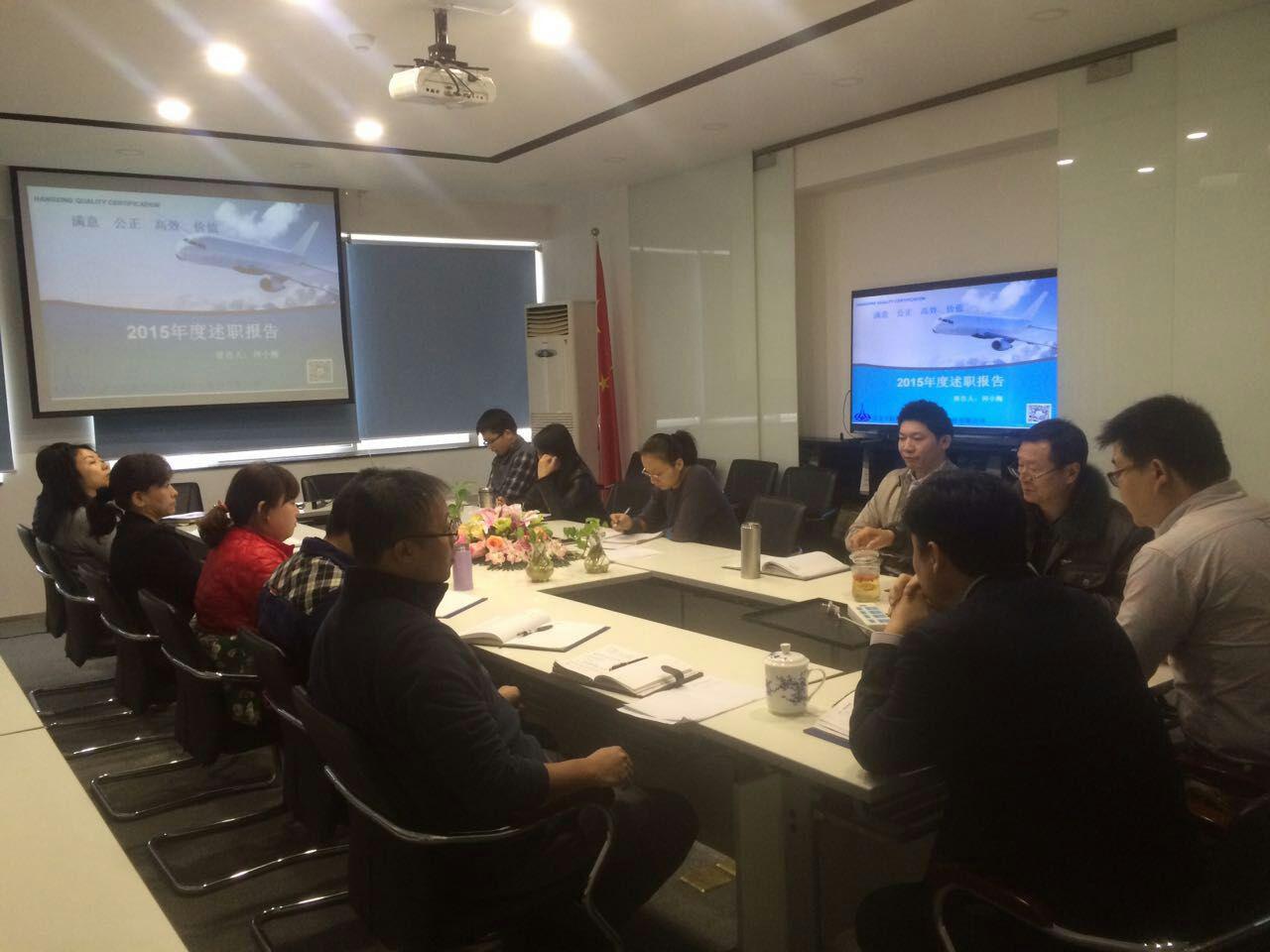 北京大陸航星質量認證中心股份有限公司(HXQC)中層干部2015年度述職及評議會議2016年1月28日在公司總部順利召開,會議由公司總經理鄭宇兵主持,公司管理層高度重視并全程參與了此次會議。